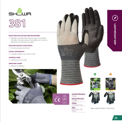 LIGHTWEIGHT GRIP A COMBINATION OF 2 TECHNOLOGIES: MOISTURE EVACUATION AND MICROFIBRE LIGHTWEIGHT GRIP